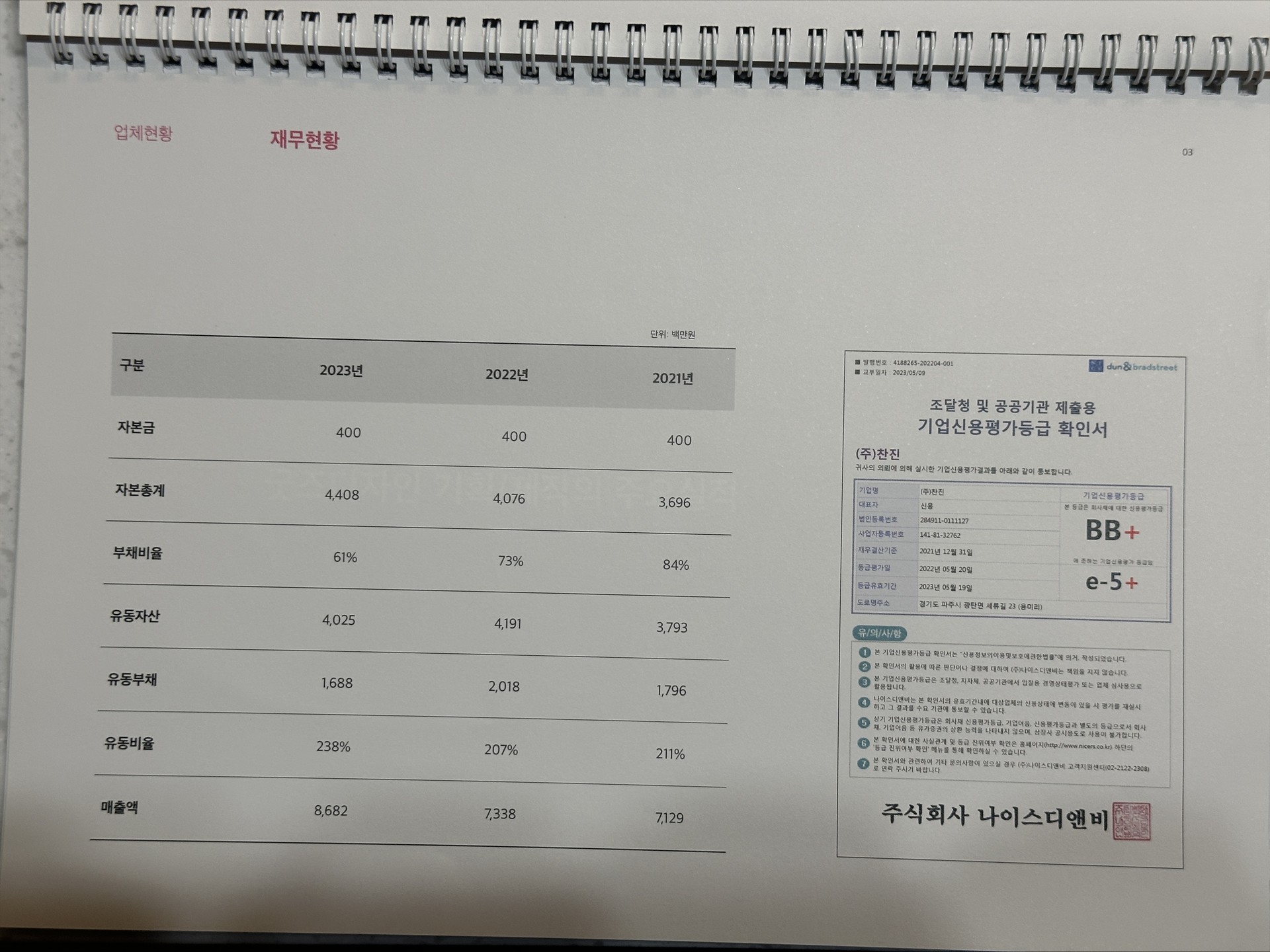 재무현황 (단위: 백만원)