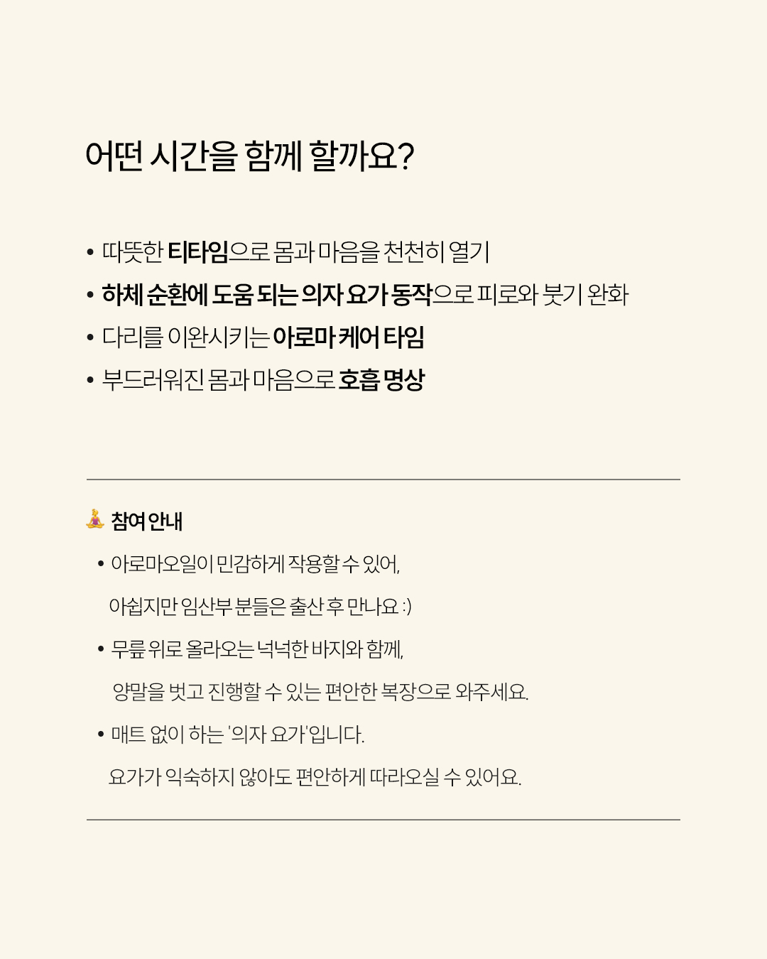 요가가 익숙하지 않아도 편안하게 따라오실 수 있어요.
