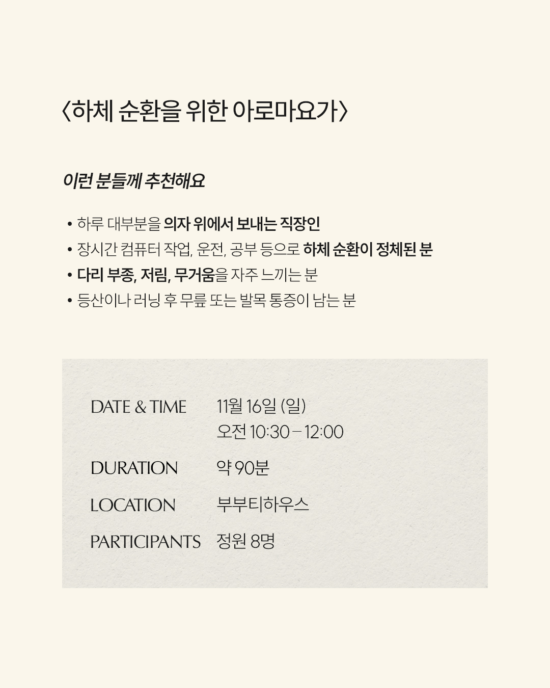 <하체 순환을 위한 아로마요가 클래스>